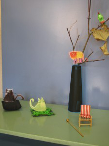 daarna nog 3 verstijfde wormen, 2 varkenshersentjes en 2 vogelveren