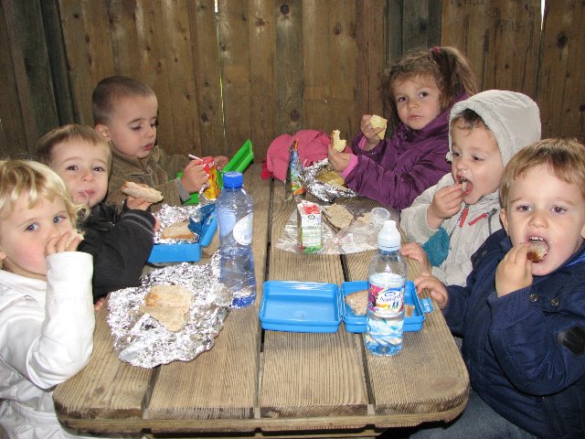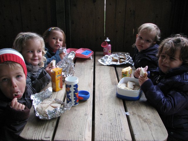 onze boterhammen eten we in het schoolhuisje in