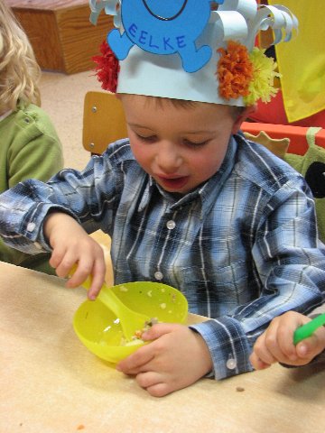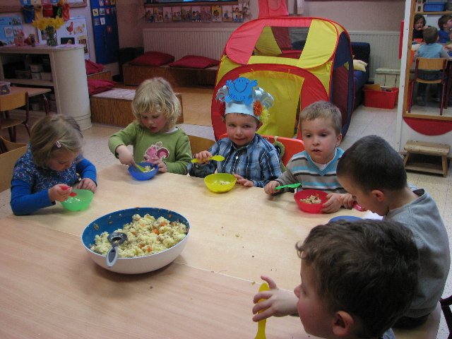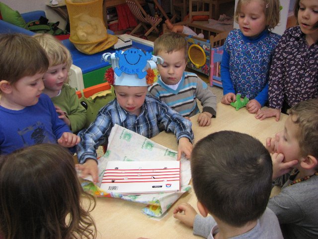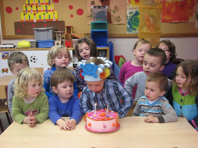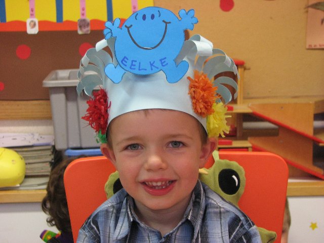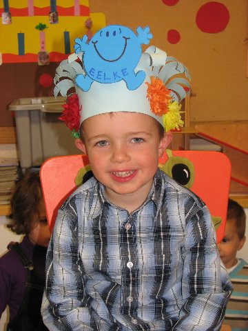 Hieperdepiep voor Eelke !! Vier jaar en feest met couscous. Eelke brengt een pakje mee voor in de klas. Wat zou dat zijn ??Een boek met liedjes en een cd. Cool zeg !!!