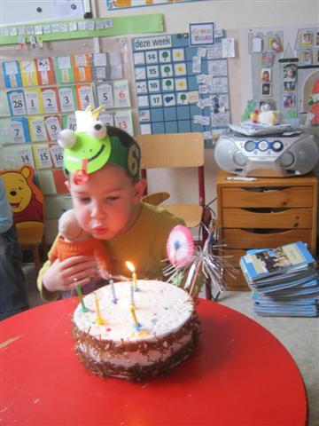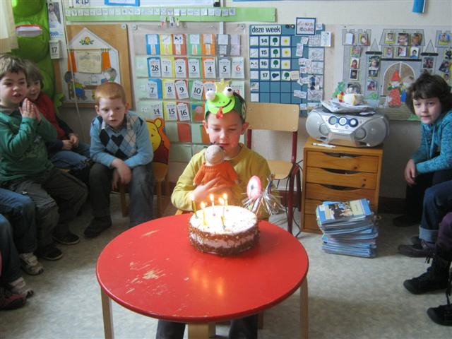 Tijl en Jules zitten klaar om de kaarsjes uit te blazen.