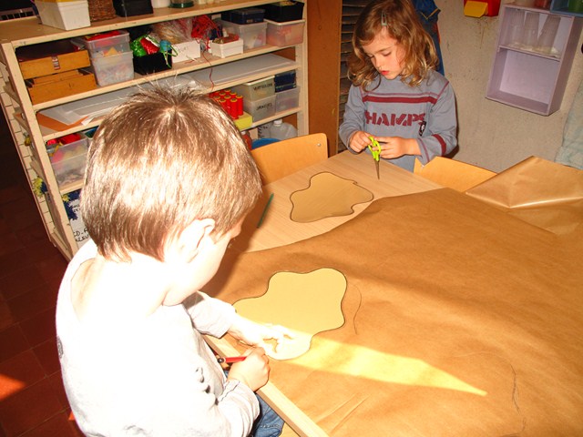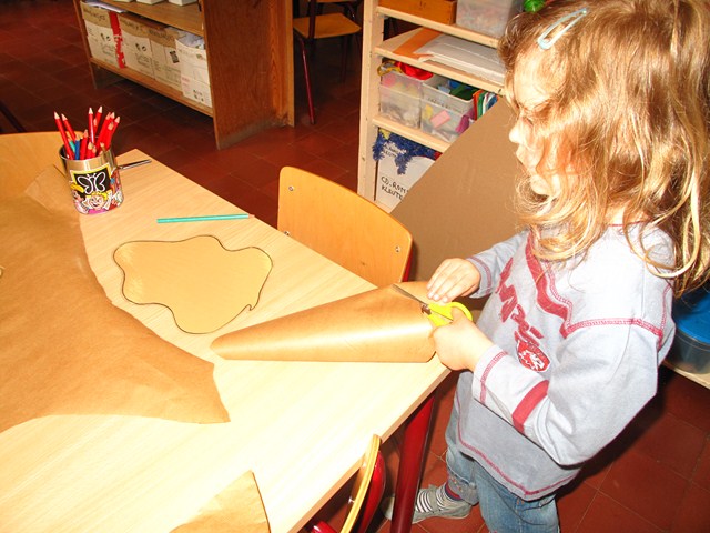 De vorm van een bizonvel uitknippen om op een tipi te kleven.