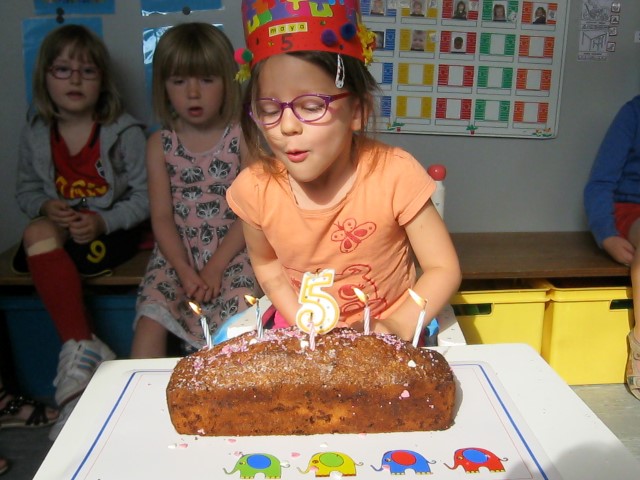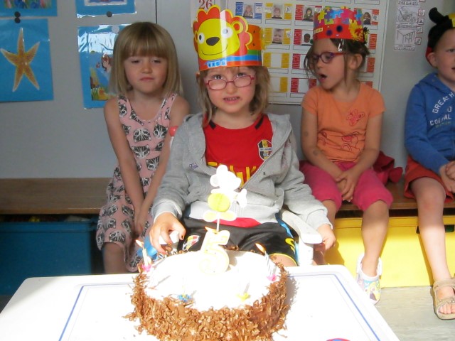 Oeps, de foto's van Bo zijn verdwenen, maar toch heeft ze de kaarsjes mogen uitblazen. We hebben gelukkig toch een groepsfotootje.