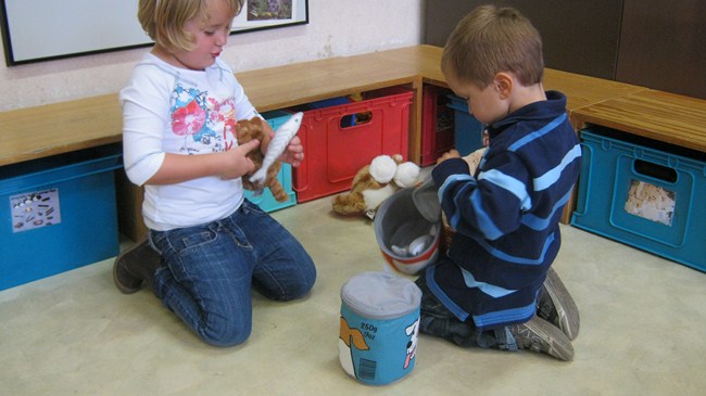 Met onze lieve puppy moeten we eerst langs bij de dierenwinkel om spullen voor hem te kopen.
