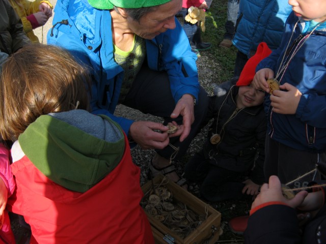 Joepie, we hebben de schat gevonden. Een kistje vol met halsbandjes, die heeft Tuurke zeker gemaakt. Iedereen krijgt er eentje.