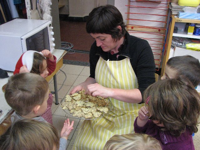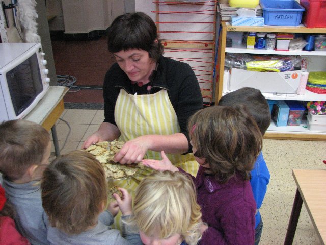 Kijk eens, ze zijn al gebakken, ze zien er wel lekker uit, vind je ook niet ? Als ze afgekoeld zijn, kunnen we proeven.