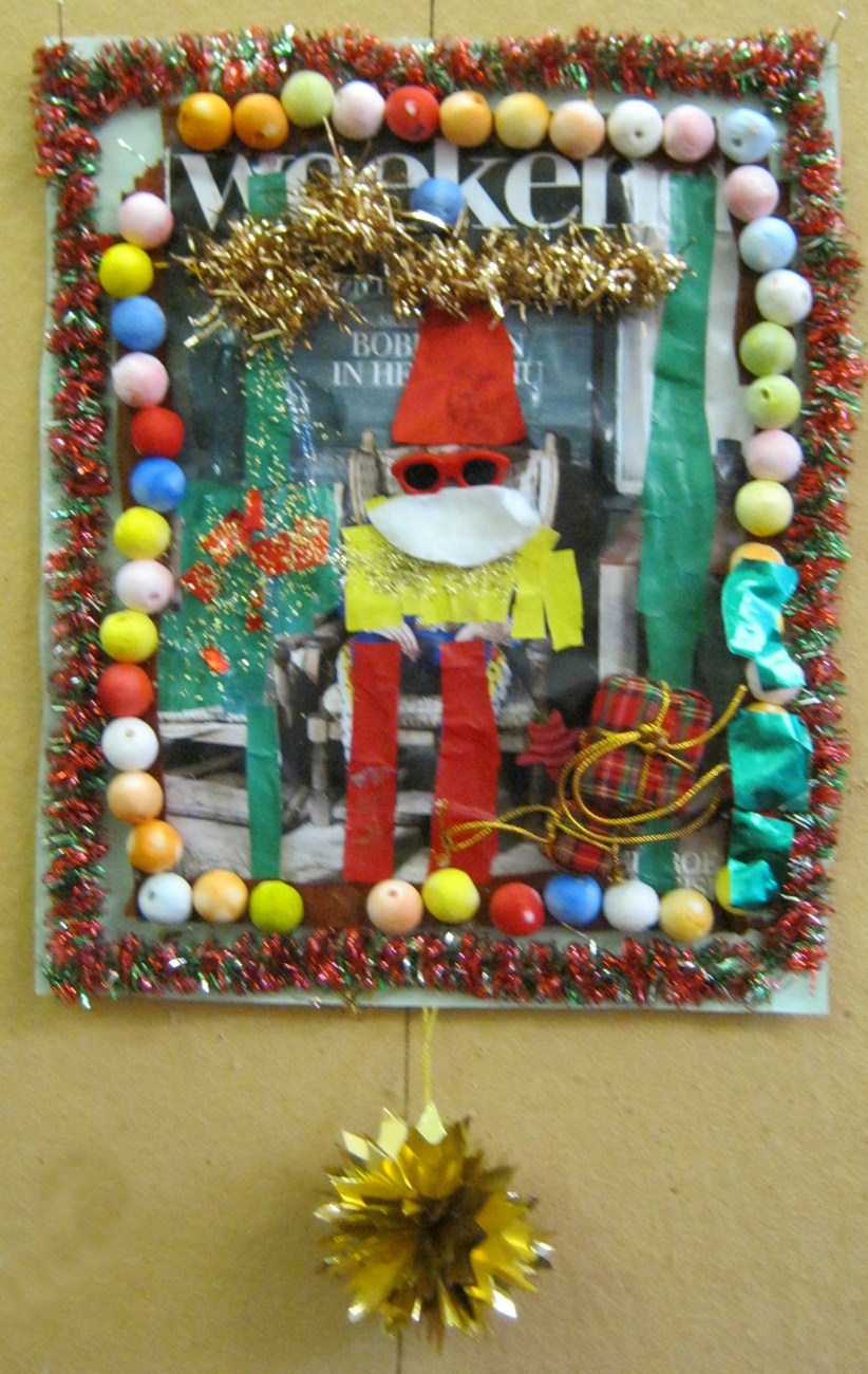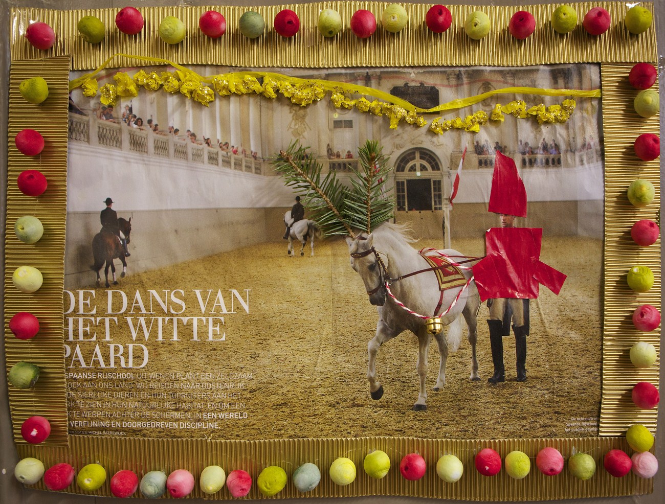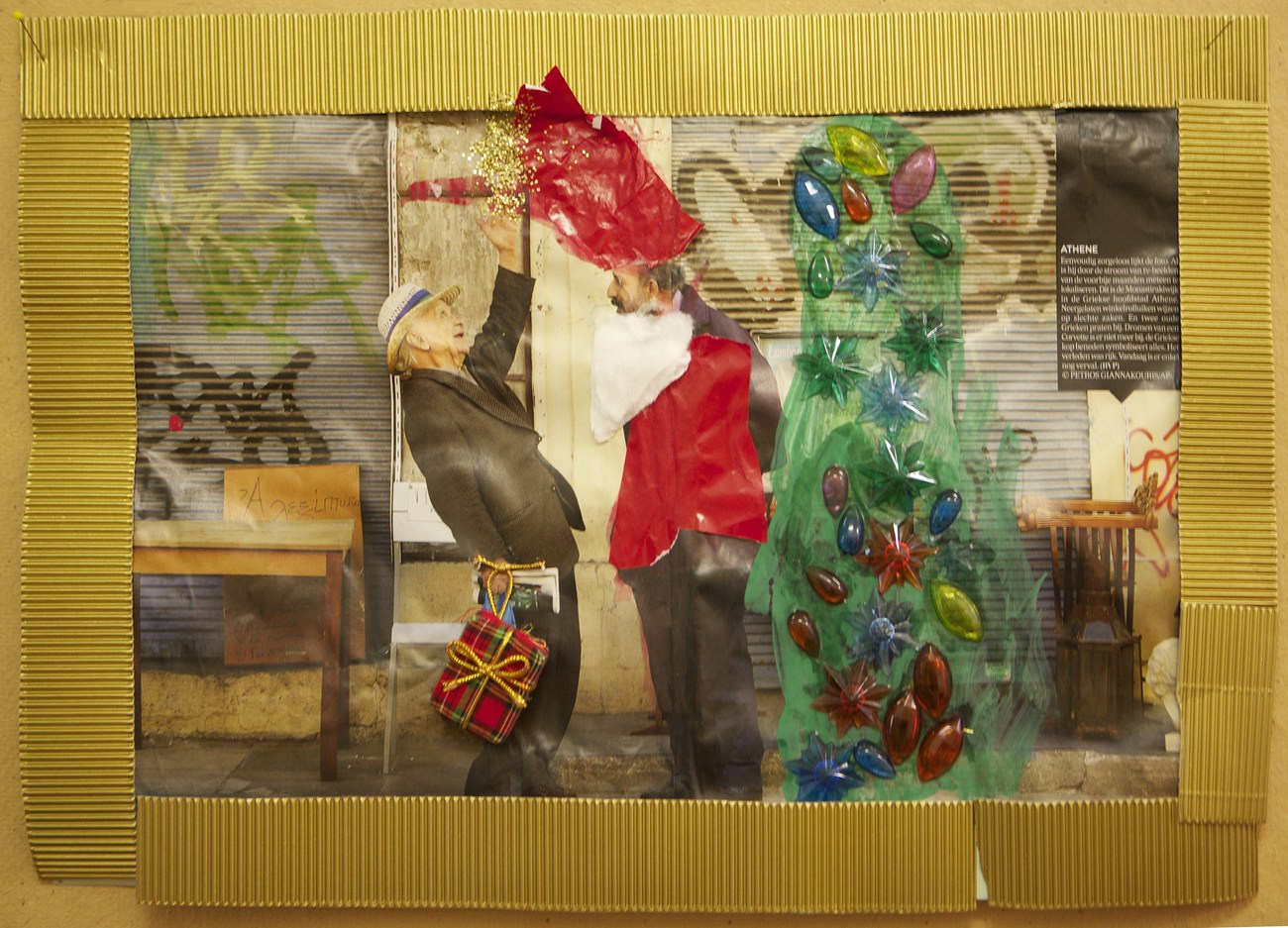 Kerstmis volgens Uma: altijd uitbundig en helemaal zelfstandig (en zonder te kunnen stoppen...). Elk kader is uiteindelijk toch te klein voor haar. Er had er best nog eentje bijgemogen, en de kerstbal kon er zelfs niet meer in.