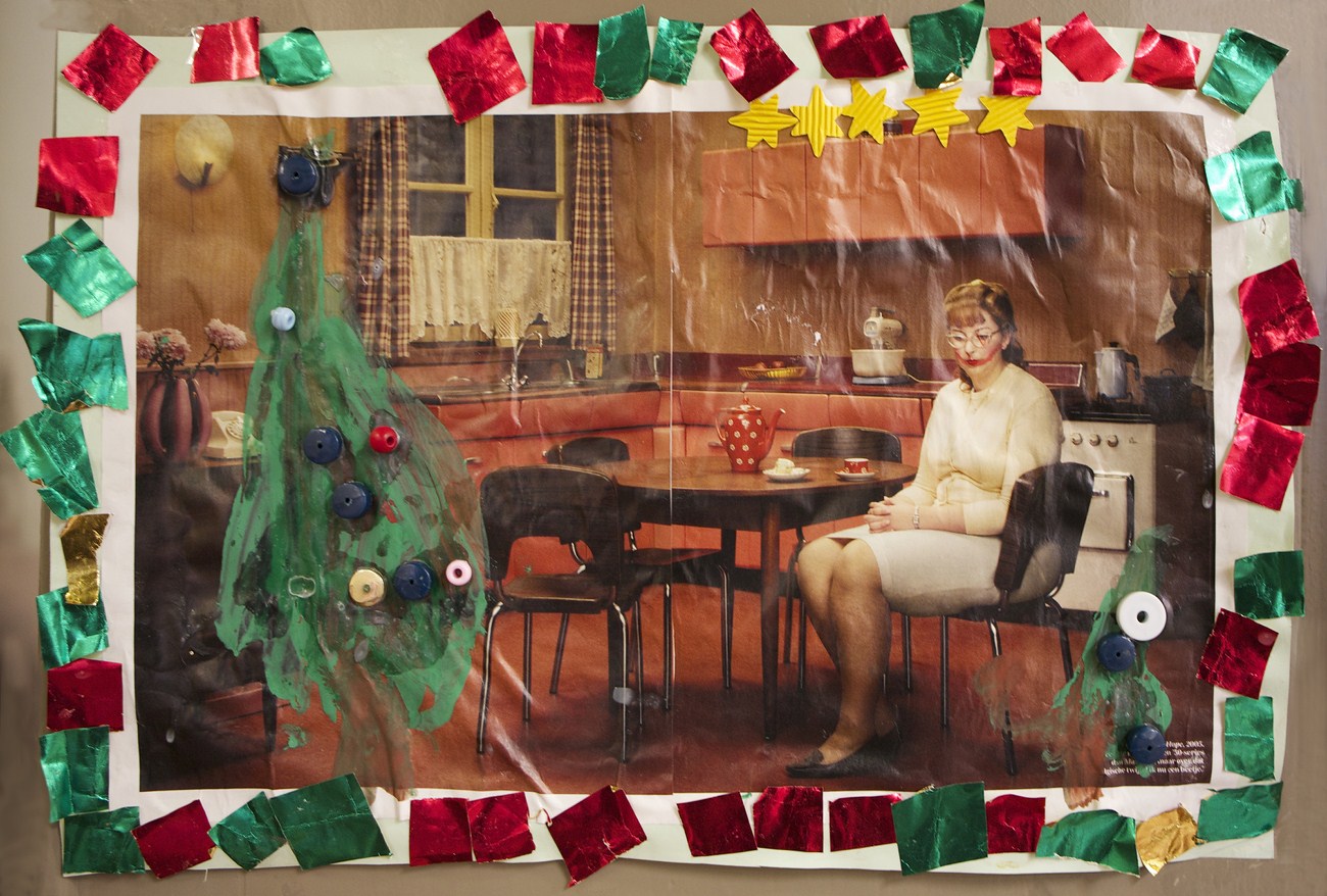 Kerstmis volgens Robbe: deze mevrouw kijkt heel sip. Dat kan ook niet anders. Haar huisje heeft niet eens een kerstboom.
