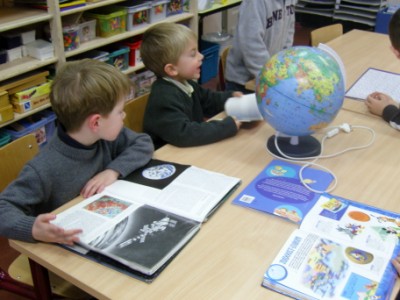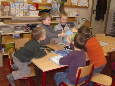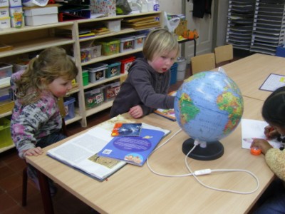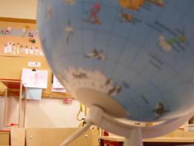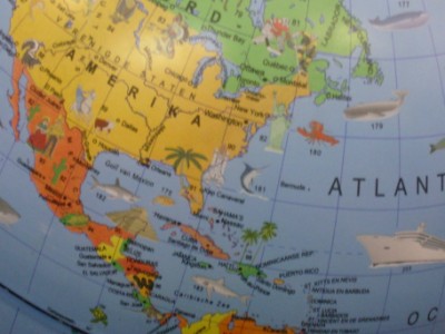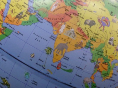 We zoeken waar de zee is en waar de woestijn, waar tijgers leven, en waar de ijsberen.