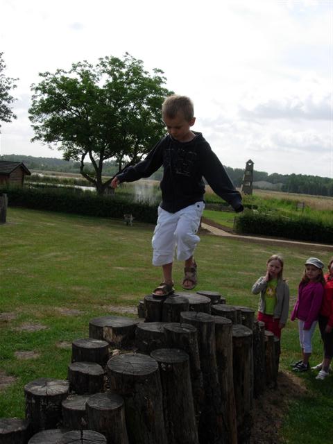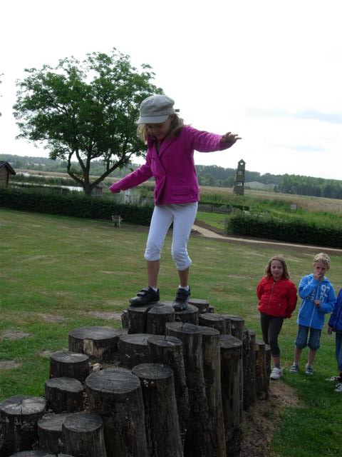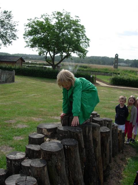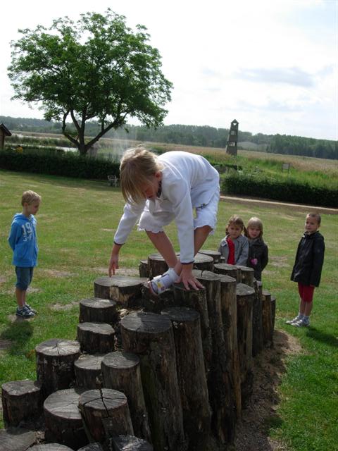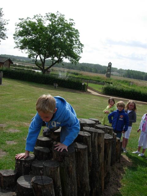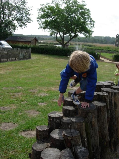 Klauteren over de palen.