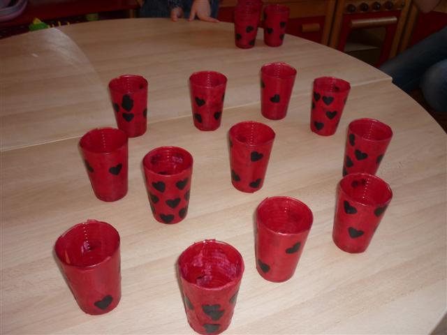 We kleven rood zijdepapier op een glas en maken er een theelichtje van.