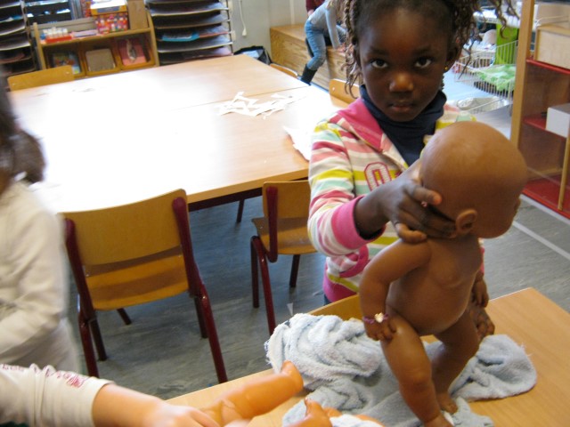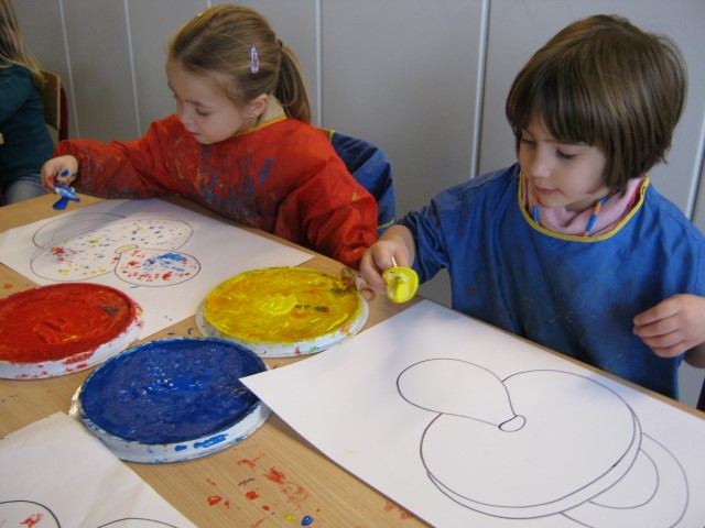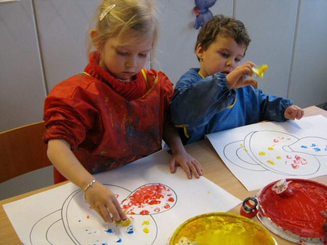 We maken samen een werkje om in de kamer van Loesje te hangen.