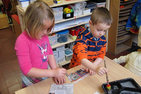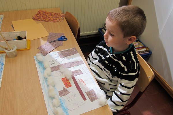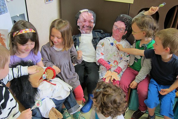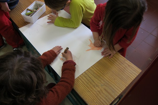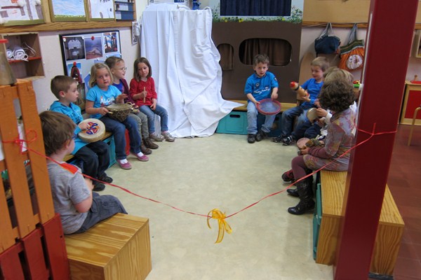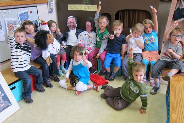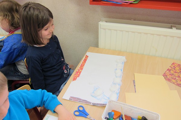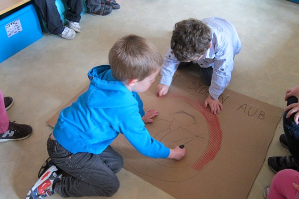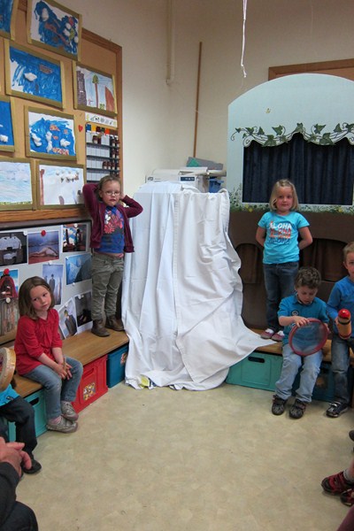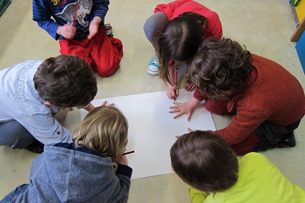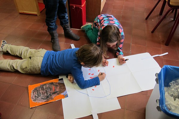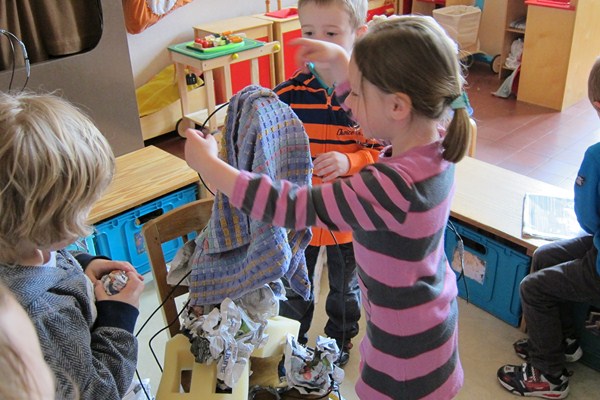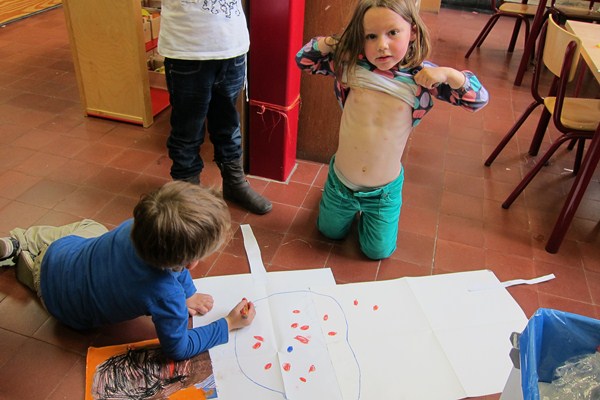 Na een kort overleg stellen de kleuters voor de Rita-pop morgen te maken van karton...