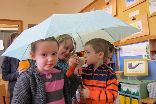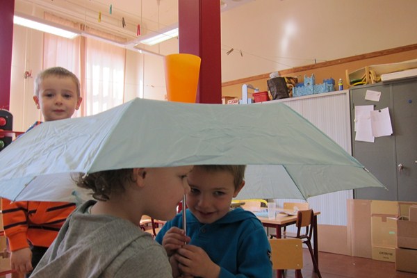 Brrr... spannend. Maar onder een paraplu kunnen we natuurlijk niet nat worden.