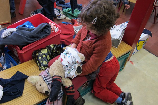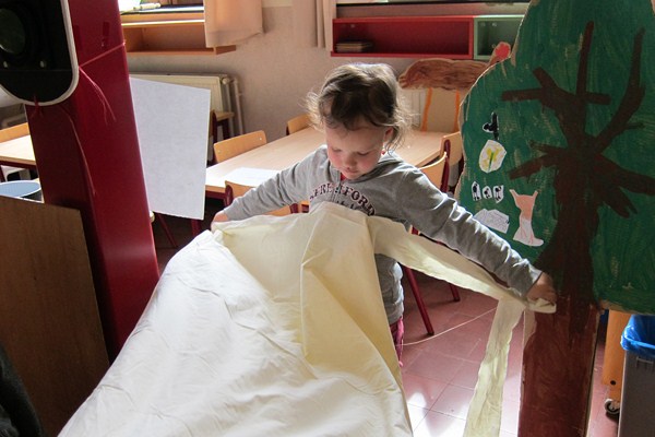 Geen tijd voor goed weer buiten. We moeten lakens scheuren om de poppen in te wikkelen