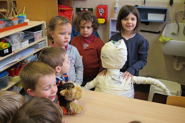 Heu heu, dat is net een mummie, zoals die van de piramides in Egypte