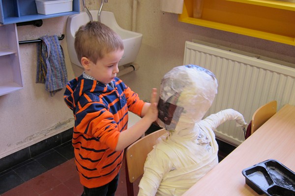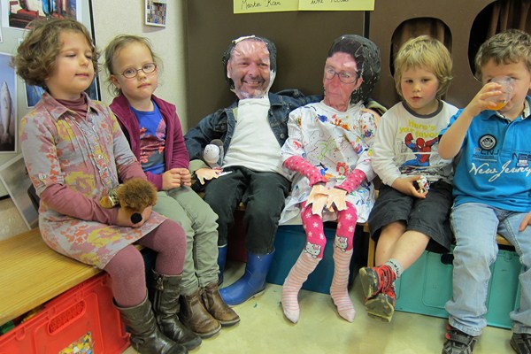Nu zullen we de poppen maken. Alleen moet het een verrassing blijven voor Meester Koen en Rita. Hoe lossen we dat op?