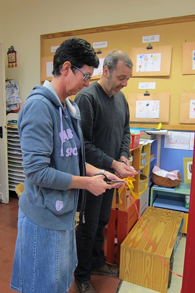 De echte Meester Koen vergat zijn das aan te doen, maar mag toch het lint doorknippen, samen met Rita