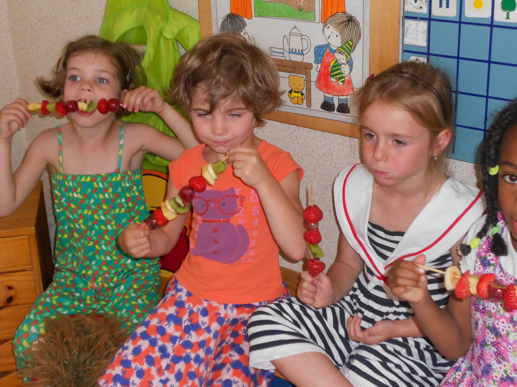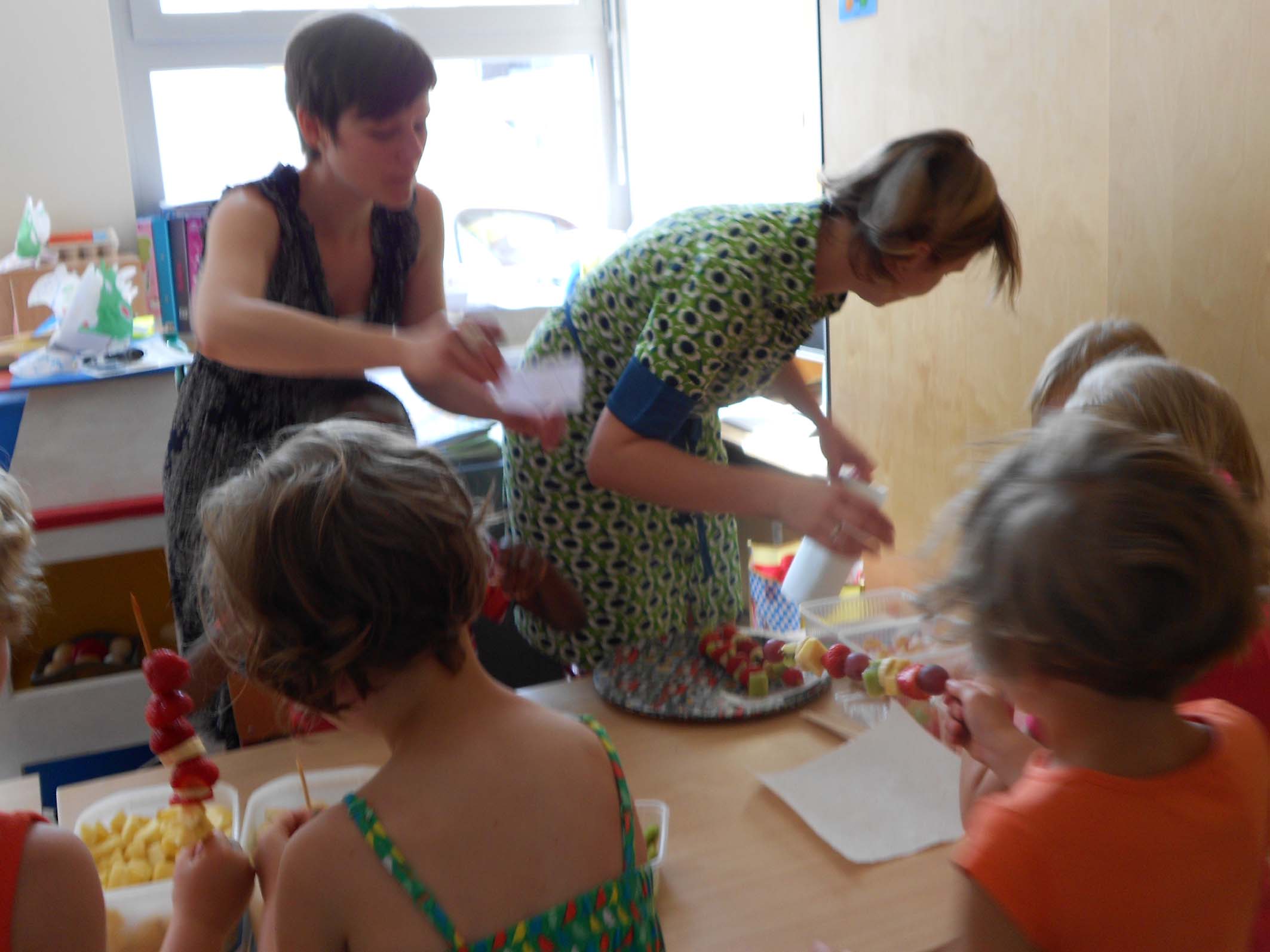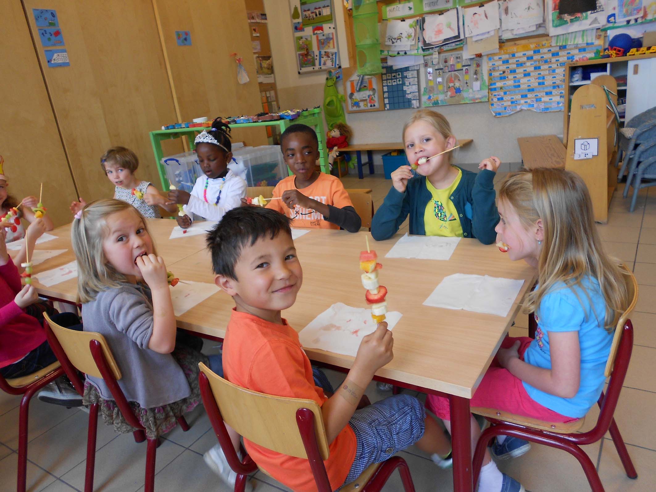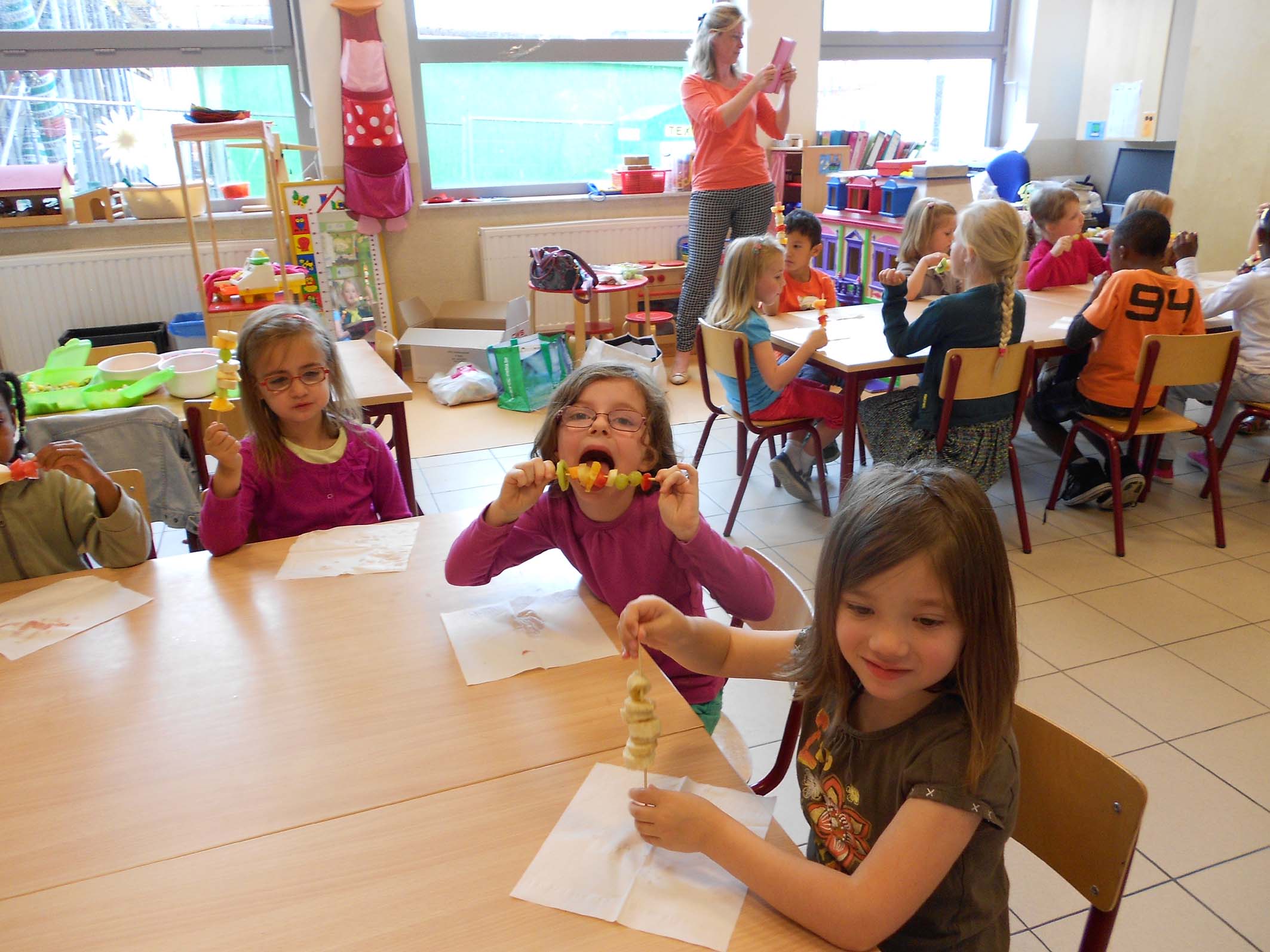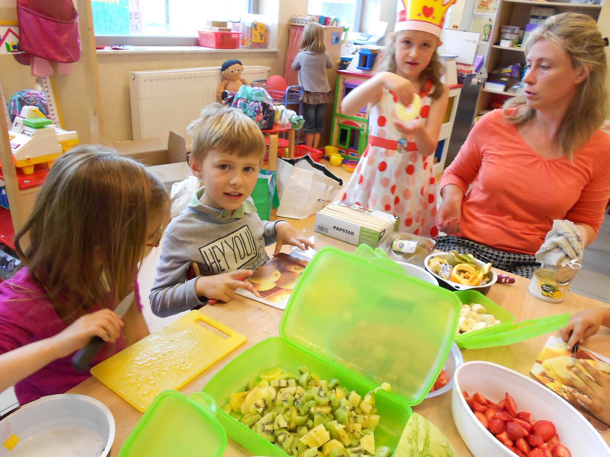 mama_en_papaMama van Hanne kwam fruit brochette maken Spelletjes spelen met mama Dylan :Fruit- en snoep- brochette mat mama van Fran en Lene :Knutselen en zingen met de mama's van Jinte en Lindsey:Oo papa vn Ruben was van de partij: