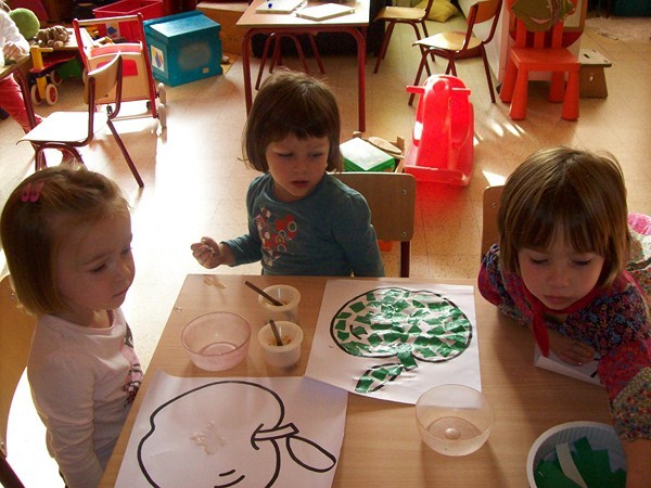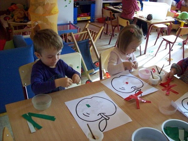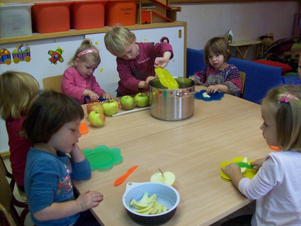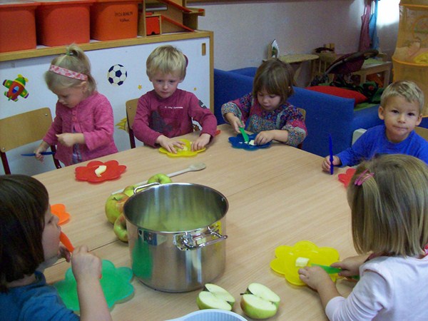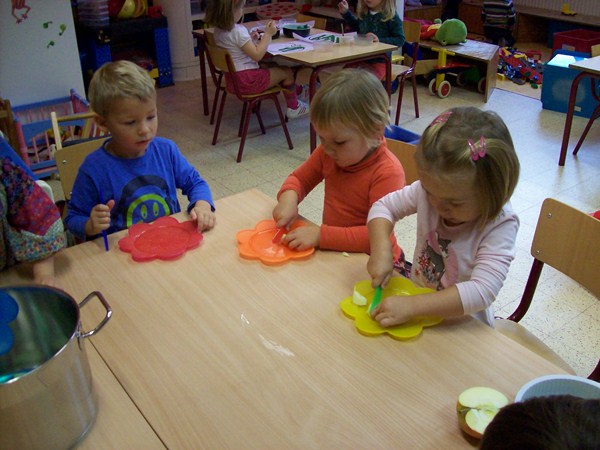 Mmm...appelmoes....heerlijk !Wij knutselen natuurlijk ook rond het thema "FRUIT" !! appeltje rood, wat ben je groot,appeltje groen, ik geef je een zoen. Hip, hap, hop,.....mmmm, ik eet je op !