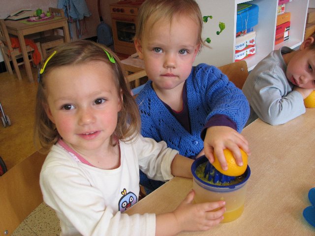 Mmmm....lekker fruit ! Appelsien, laat je zien, pas maar op, of ik eet je op ! Wij maken vers sinaasappelsap en proeven allemaal wel een beetje. Zuur, zoet, ....