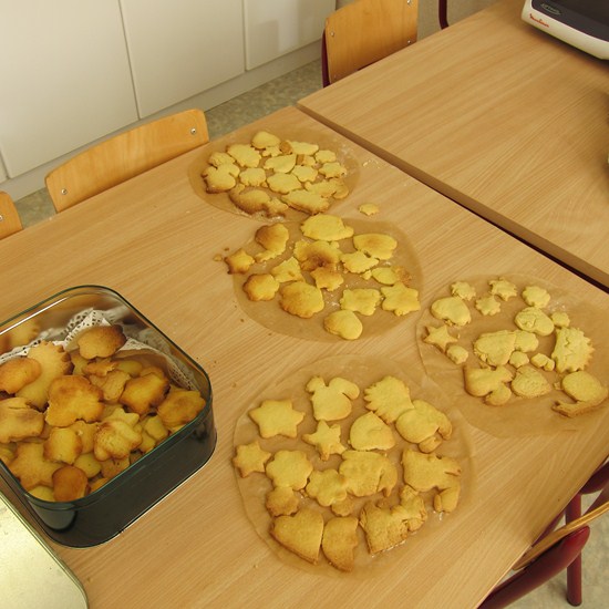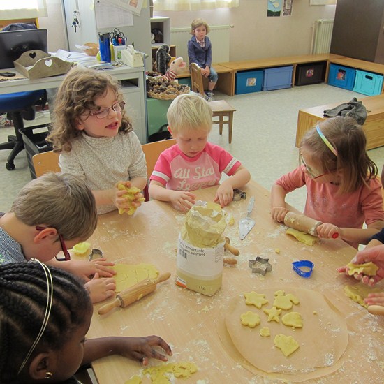 Moesje van Arne bakt met ons koekjes en de mama helpt mee
