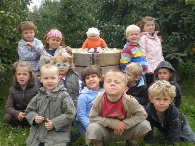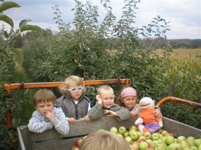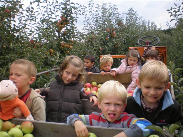 Na het harde werken gingen we met een kist vol appels weer naar de klas.