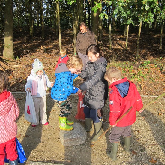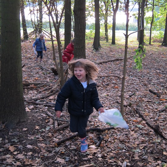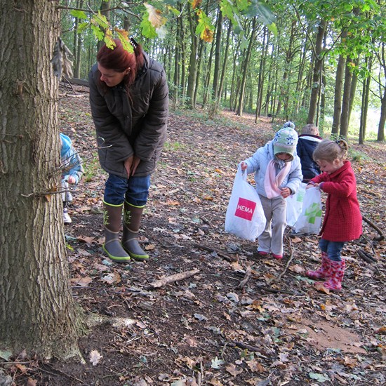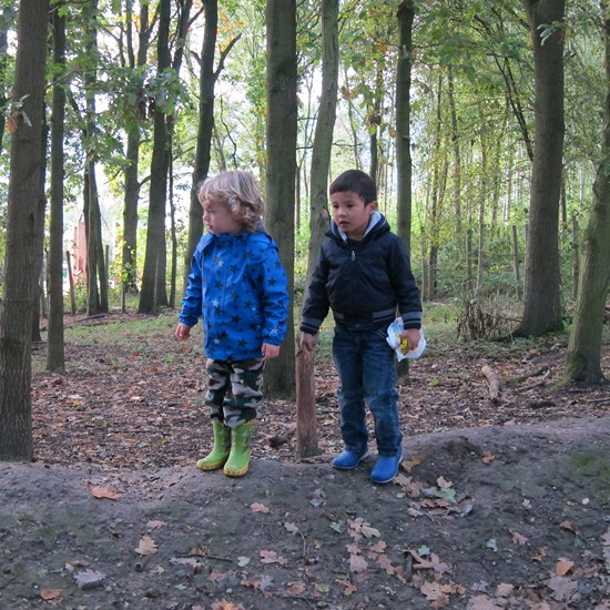 Blaadjes vinden we nog niet zo veel, maar takken, stokken en boomstammen krijgen alle aandacht. Zouden hier misschien indianen wonen?