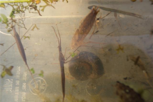 Een waterslak, larven van een libelle... dit hebben we allemaal gevangen!