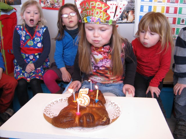 Op de cake mocht Lena 5 kaarsjes uitblazen.