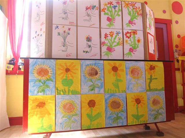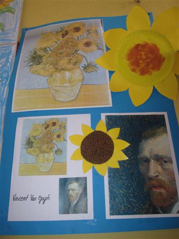 Hieronder volgen onze "zonnebloem" kunstwerken en onze "picasso's "