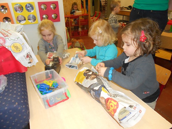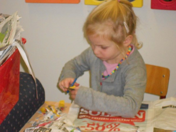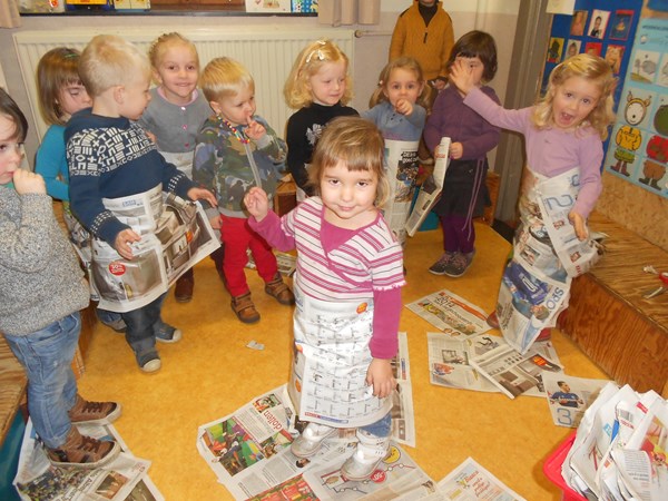 verkleden met kranten.... wie heeft het mooiste rokje/jurkje aan ??