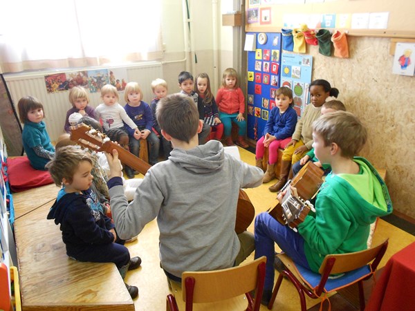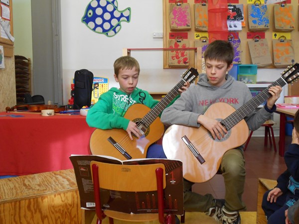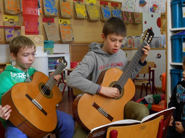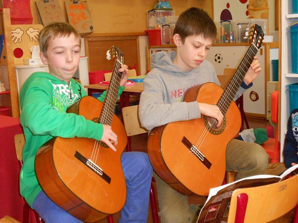 Robbe en Lasse spelen gitaar