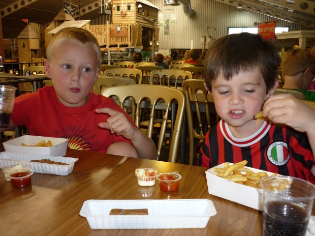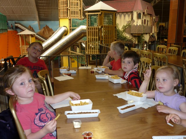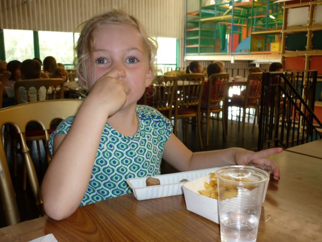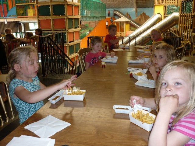 Schoolreis naar MolenheideNa al dat zwemmen hebben we grote honger en zin in lekkere frietjes met curryworst. Mmm smakelijk.Na de frietjes gaan we ons super amuseren in de speeltuin