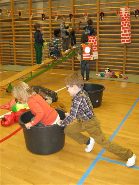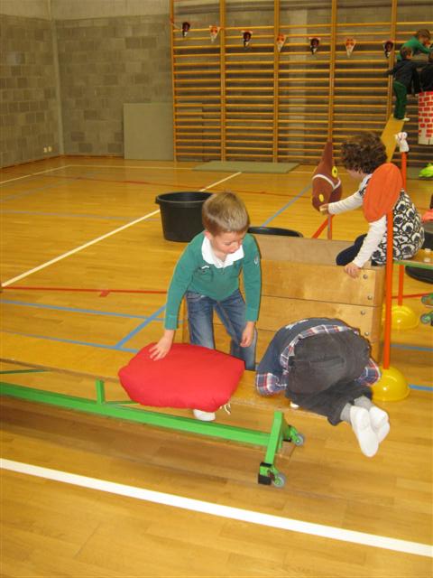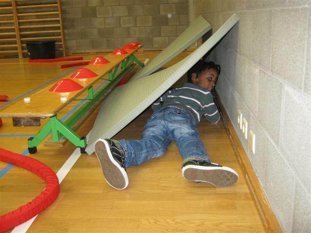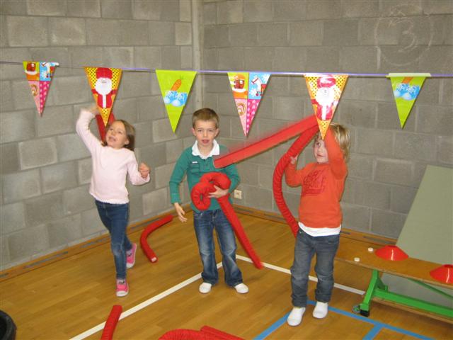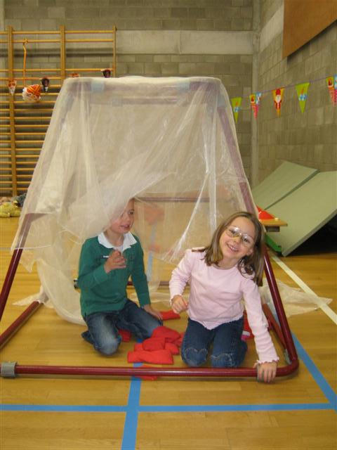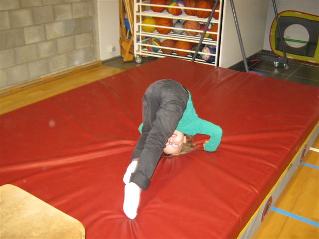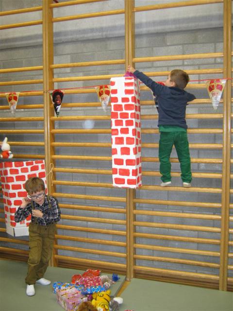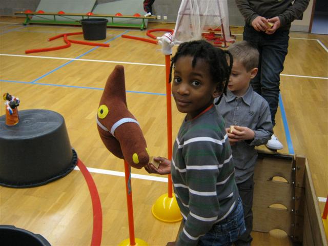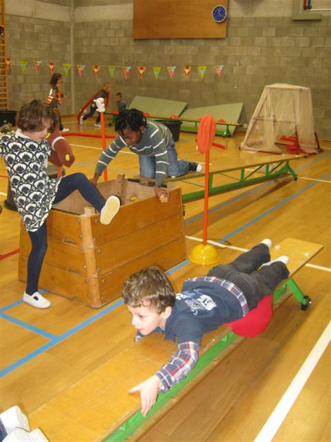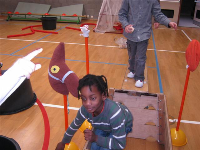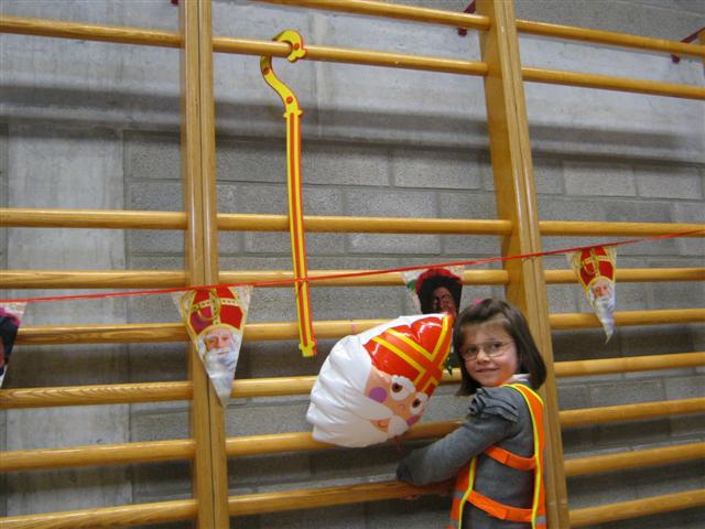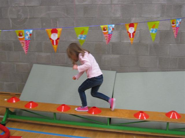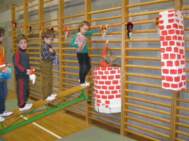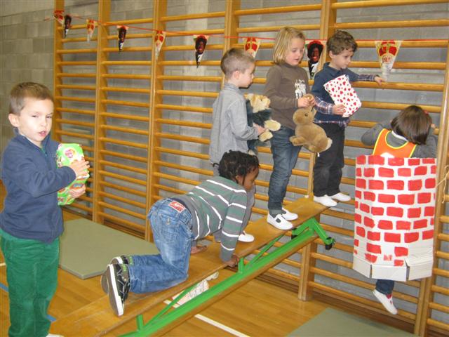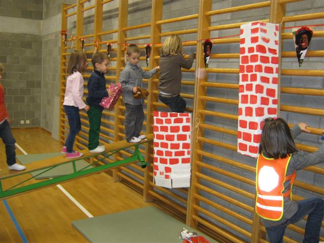 We oefende in de turnzaal met juf Véronique zoals echte pieten dat doen.