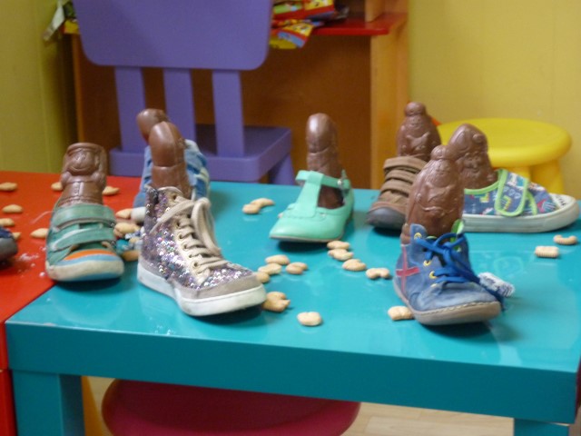 Sint en Piet zijn vannacht in ons klasje geweest. Alle schoentjes zijn gevuld met een lekker chocolaatje