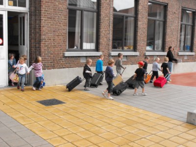Vertrek met de bus vanuit Wommersom naar de luchthaven te Zaventem.