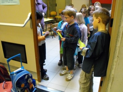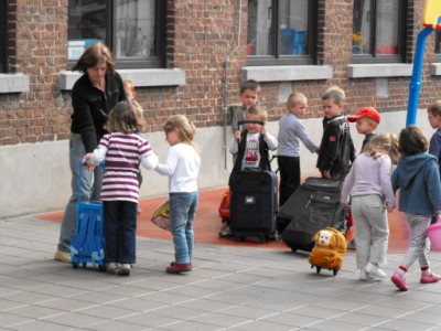 De veiligheidsagenten zijn onverbiddelijk in hun werk. Ze kijken alles grondig na. Daarom staat er al snel een hele rij wachtenden. Af en toe geeft de metaaldetector immers een luide piep. De kam van Dorien en de tandenborstel van Lara mogen niet mee met de handbagage. Dat vinden ze allebei heel erg. Ze kunnen die immers niet missen. Gelukkig mogen hun spullen wel mee met de vracht in het laadruim van het vliegtuig.