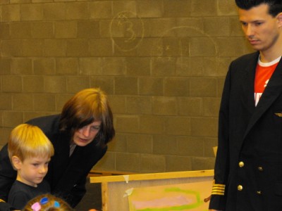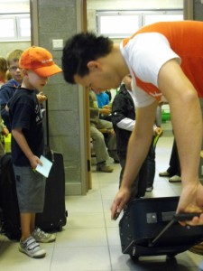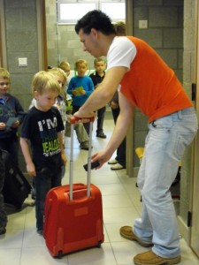 Bagagecontrole: Er wordt heel gespannen toegekeken of we de luchtverkeersregels niet hebben overtreden.