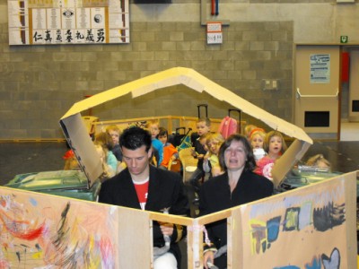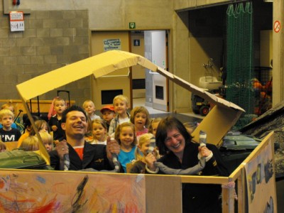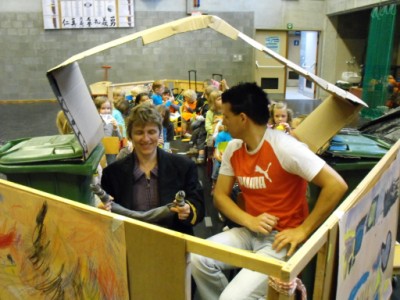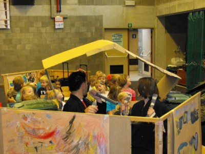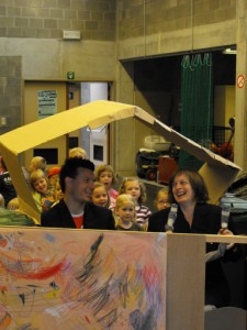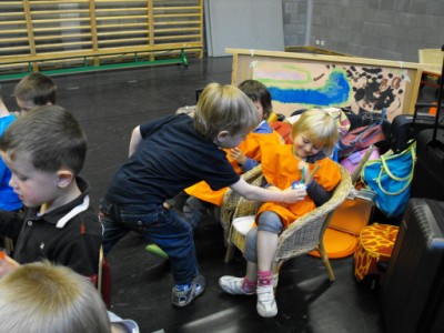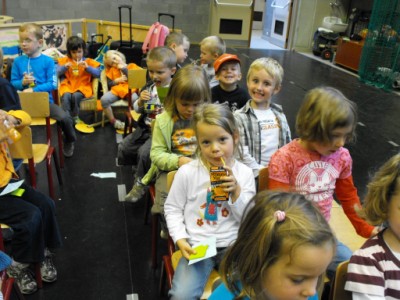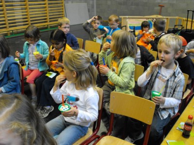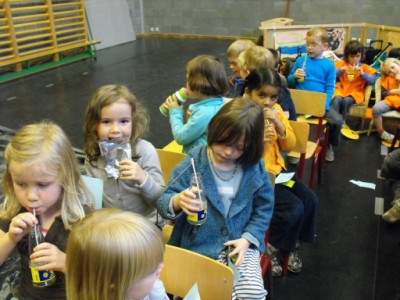 En omdat er net één van de kleuters jarig is trakteert die boven in de lucht op ijsjes met smarties.