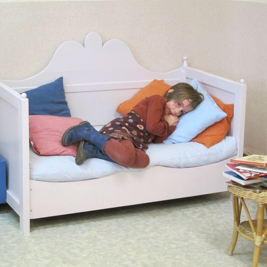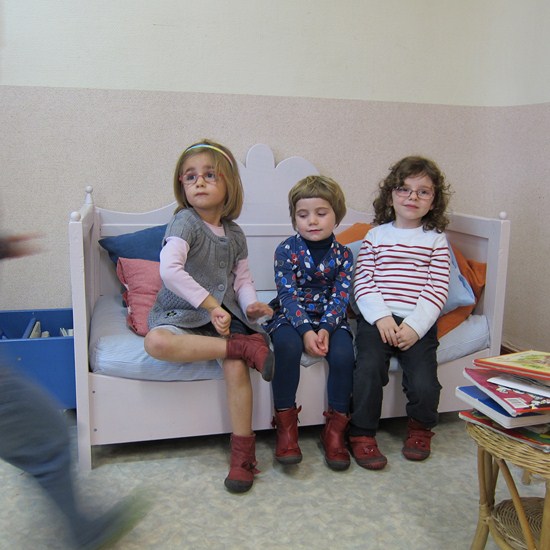 Hier rusten wij uit in “de salon”. Dit was vroeger het babybed van de juf. Maar zij kon er niet meer in en maakte er voor ons een intiem zeteltje van.