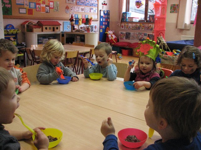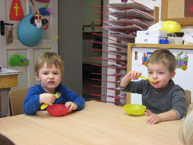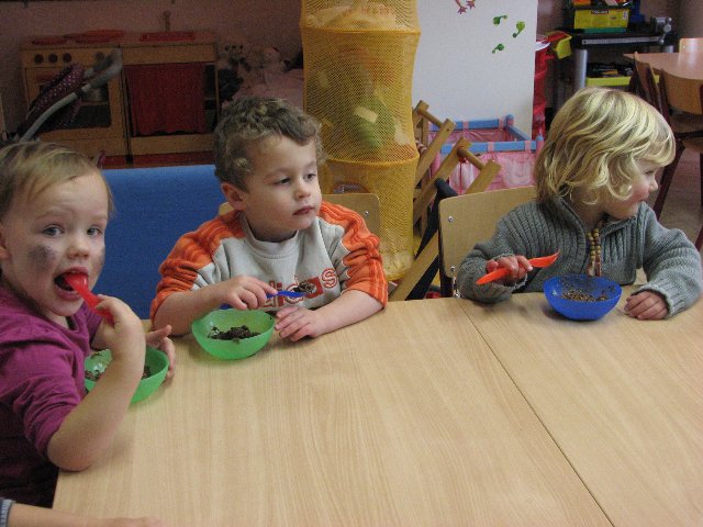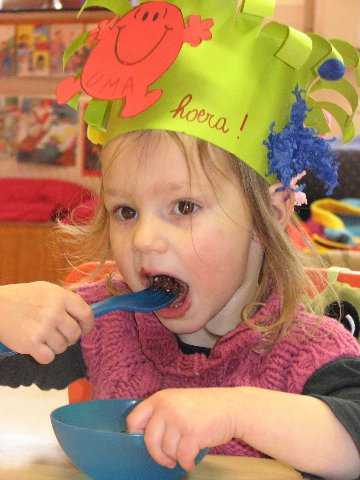We smullen van de Pieten-chocoladetaart. Hmmm.....lekker!