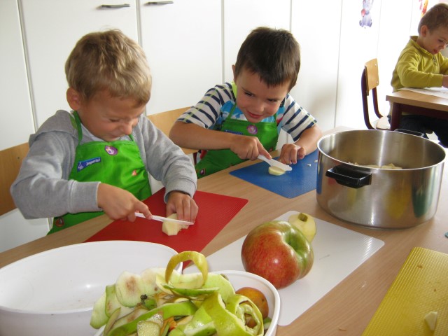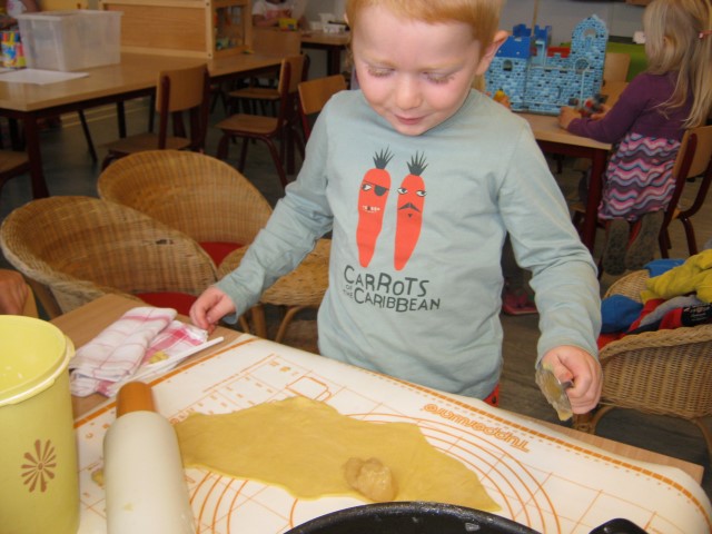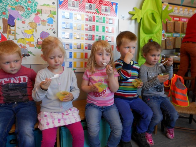 De appelmoes zetten we in de koelkast tot morgen want dan maken we appelflapjes.