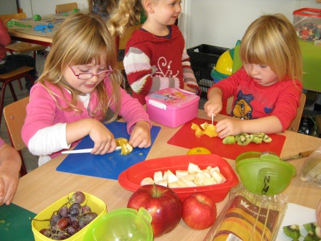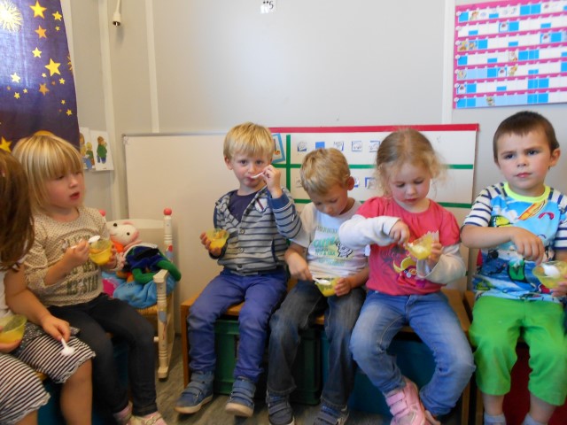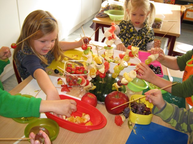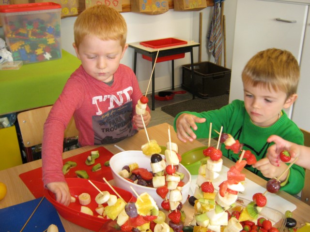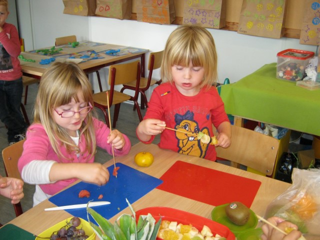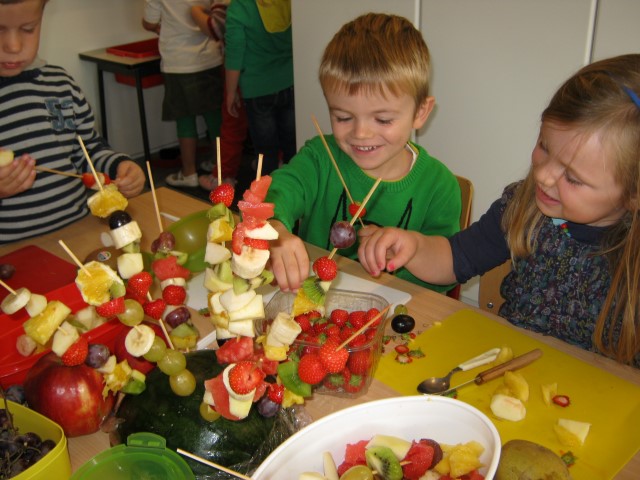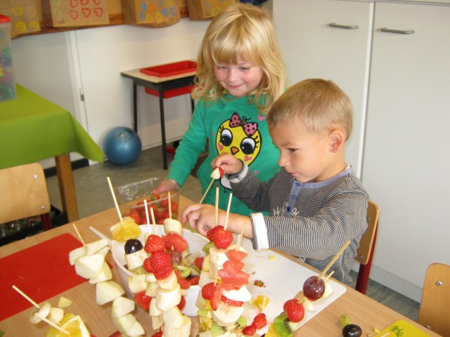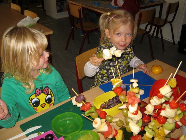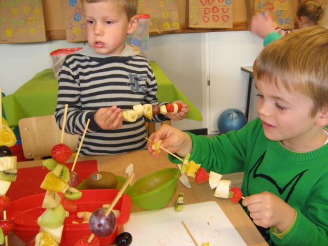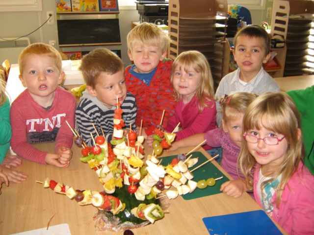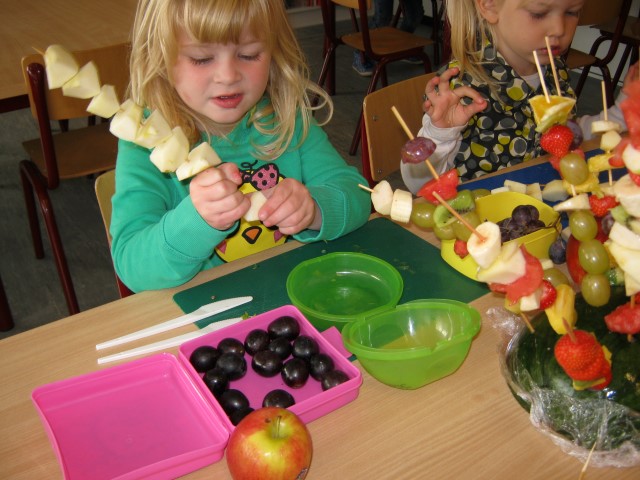 Vandaag hebben we allemaal een stuk fruit meegebracht, Lobke haar watermeloen kwam goed van pas. We prikten