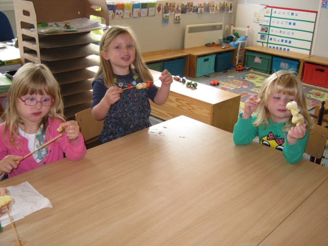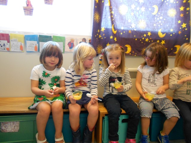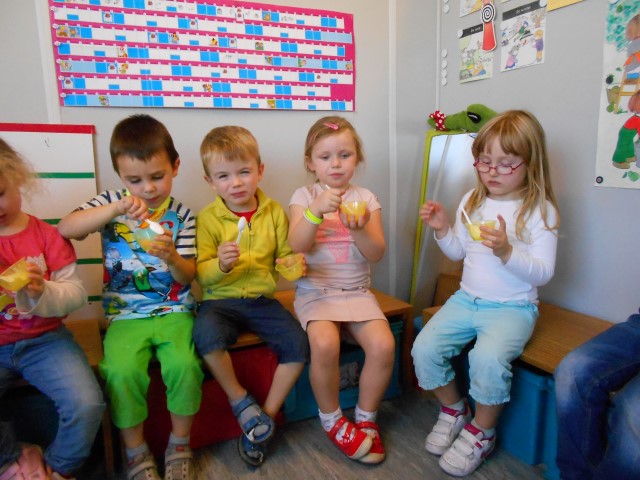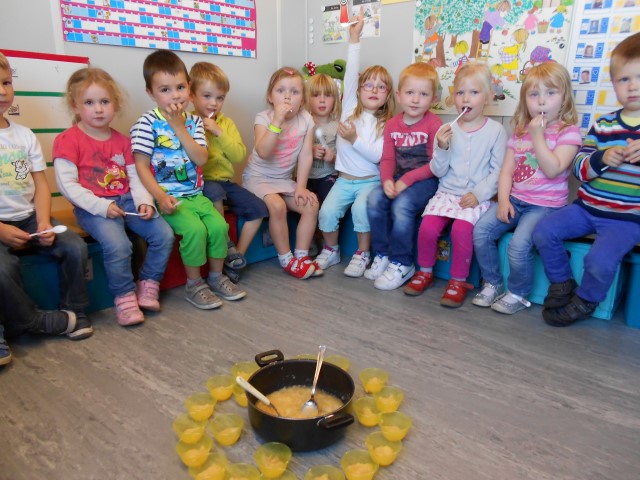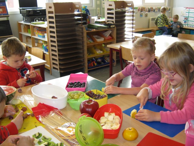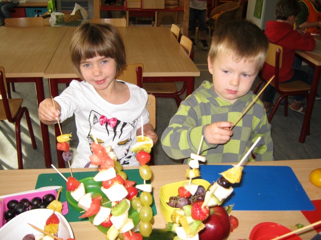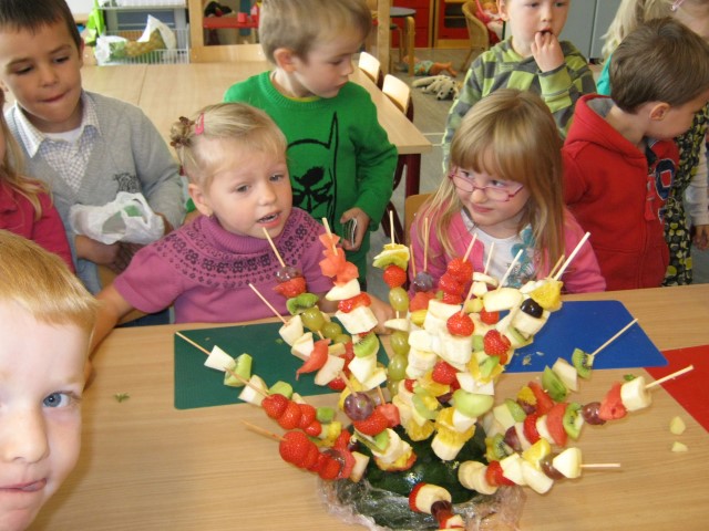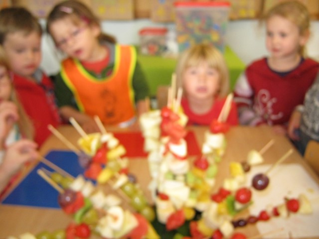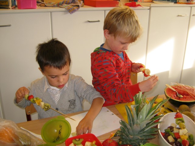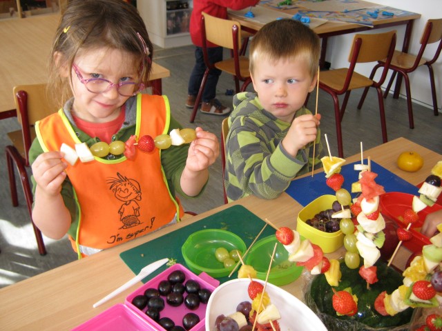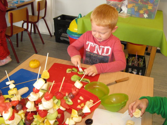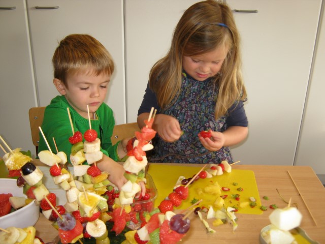 Vandaag hebben we allemaal een stuk fruit meegebracht, Lobke haar watermeloen kwam goed van pas. We prikten