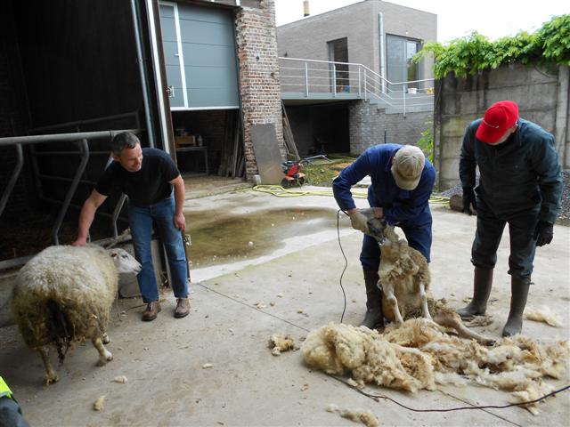 Toevallig worden vandaag de schaapjes geschoren. Dat hebben we nu ook eens gezien.