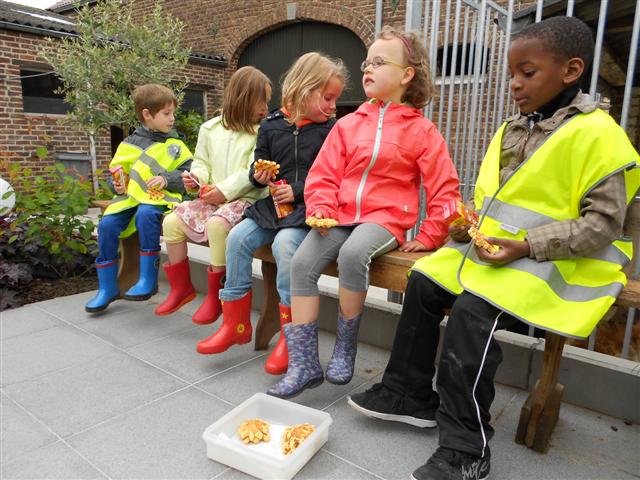 Tijd om eventjes te rusten en Floor haar oma trakteert iedereen op een lekkere wafel en chocomelk.