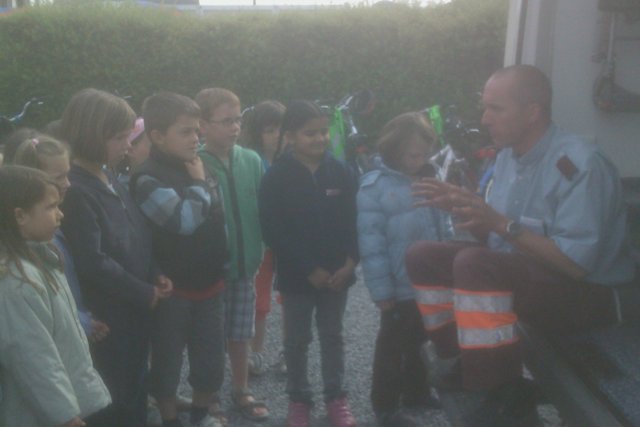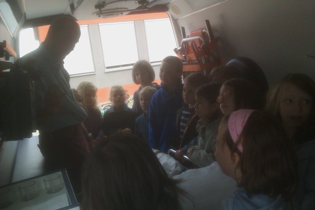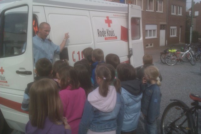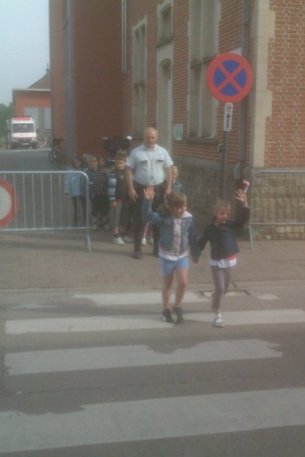 VerkeersdagGoed luisteren naar de agent.Klaar om over te steken.Bij de ziekenwagen.Op het einde van de dag was het tijd voor een quiz!Iedereen klaar om naar huis te gaan.