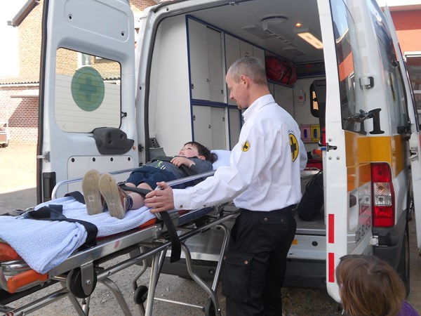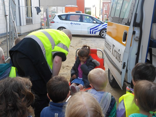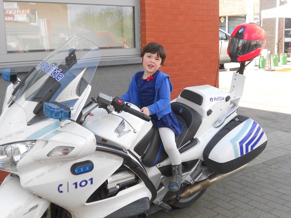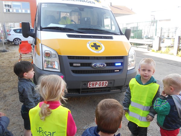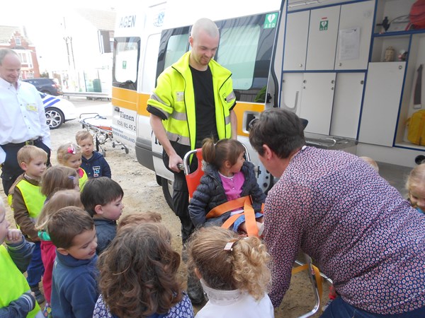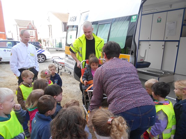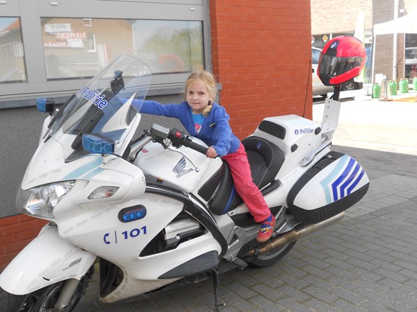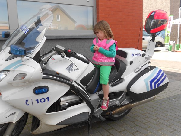 Verkeersdag 8 mei 2015verkeersomloop !een kijkje nemen bij de ziekenwagen...De politiewagen.De politiemotor.