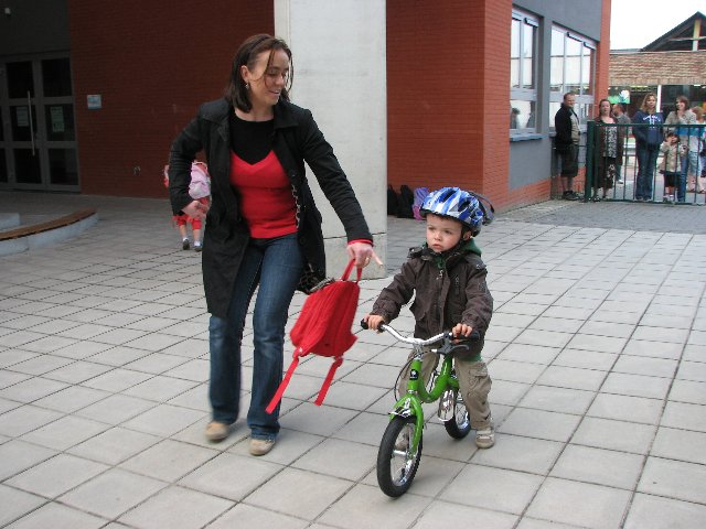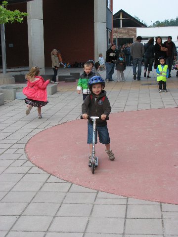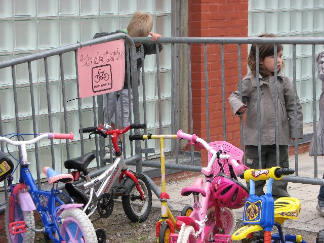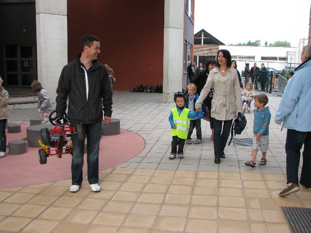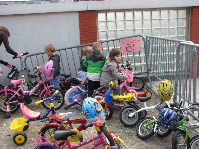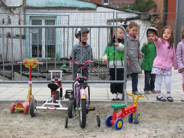 Verkeersdag mei 2010Alle fietsjes, go-carts, steps, ..... worden in de fietsenstalling netjes per klas bij elkaar gezet.