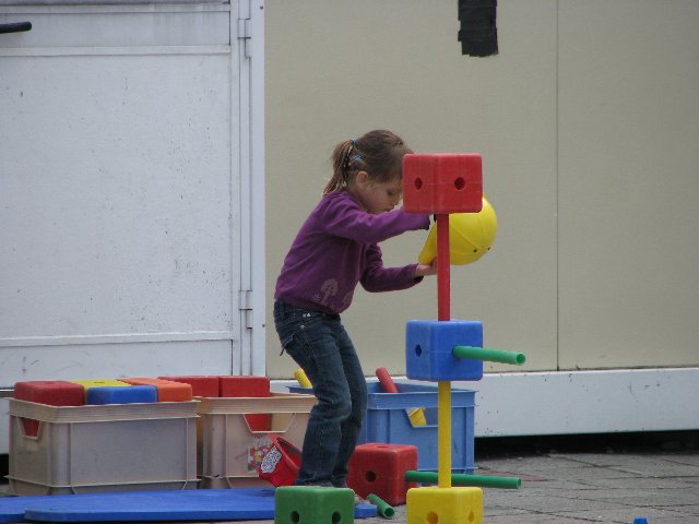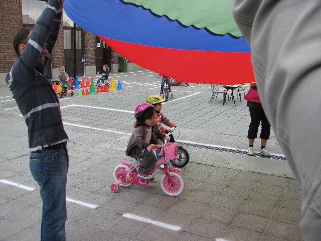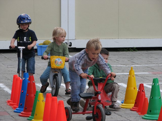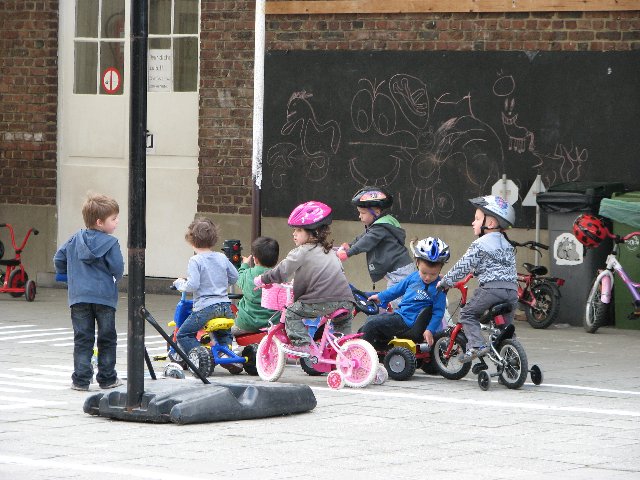 verkeersomloop vervolgOok de zus van Hannah, Minne, kwam meerijden met grote zus.Werken in uitvoering naast onze verkeersomloop.